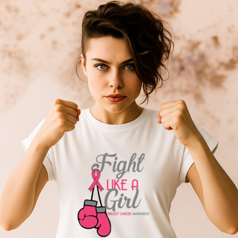Product Description:Stand strong, speak loud, and fight with heart. 💪 This bold tee features a powerful “Fight Like a Girl” graphic with pink boxing gloves and ribbon – a fearless statement of strength and solidarity for breast cancer warriors and supporters. Made from premium cotton for all-day comfort, it’s not just a shirt—it’s a movement….