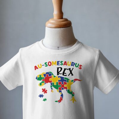 Au-Somesaurus Rex Autism Awareness T-Shirt 🦖🧩 This tee is too cute to resist! The Au-Somesaurus Rex design brings together dino fun and colorful autism pride, making it a shirt every little one will love wearing again and again. Bright puzzle pieces form the T-Rex shape, spreading joy, confidence, and awareness wherever they go. Super Soft…