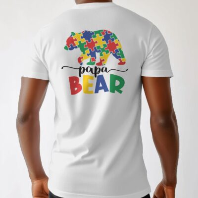 Papa Bear Autism Awareness T-Shirt 🐻🧩 Strong, loving, and protective — just like a Papa Bear! This Autism Awareness tee features a bold puzzle-piece bear design with the words Papa Bear in vibrant colors, making it the perfect shirt for dads who proudly support and advocate for their loved ones. Premium Comfort: Soft cotton blend,…