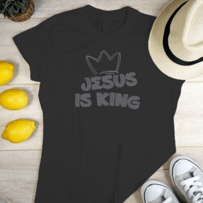 ✨ “Jesus Is King” Rhinestone Tee ✨Shine your faith in style with this bold black t-shirt featuring dazzling rhinestones that spell out “Jesus Is King” with a regal crown above. Crafted for comfort and sparkle, this tee is perfect for worship, weekend wear, or sharing your faith out loud. 👑 Eye-catching rhinestone design🖤 Soft, breathable…