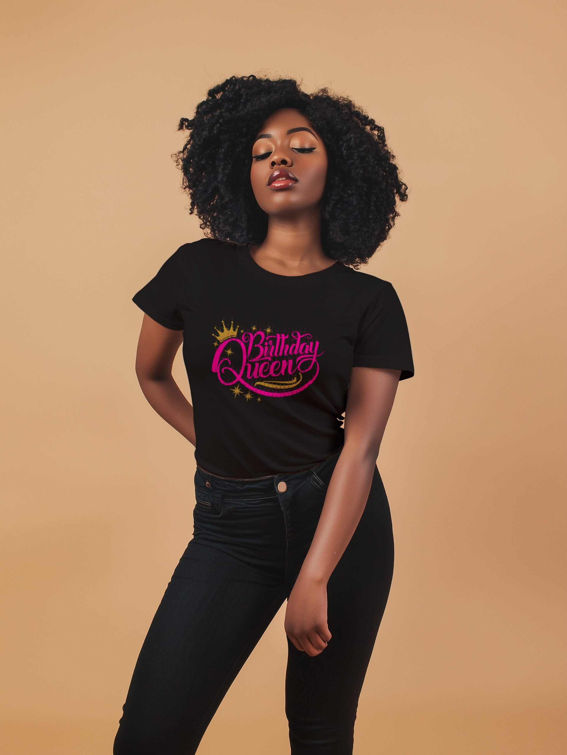 “Slay your special day in style! This ‘Birthday Queen’ tee brings sparkle, sass, and royalty to your celebration. Comfy, bold, and made to turn heads – because queens deserve to shine!”