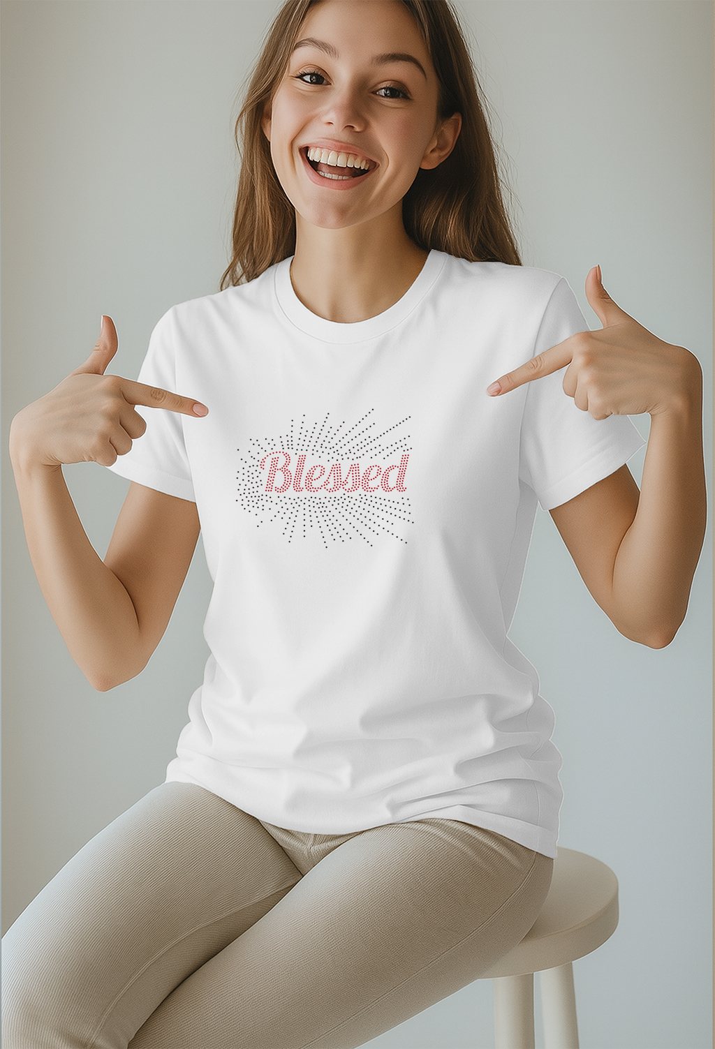 Embrace faith and fashion with our “Blessed” Rhinestone T-Shirt. This elegant black tee features radiant rhinestone accents forming a dazzling burst around the word Blessed—a stylish reminder of grace and gratitude. Soft, breathable cotton ensures all-day comfort while you shine with confidence. Perfect for everyday wear, church gatherings, or faith-based events.