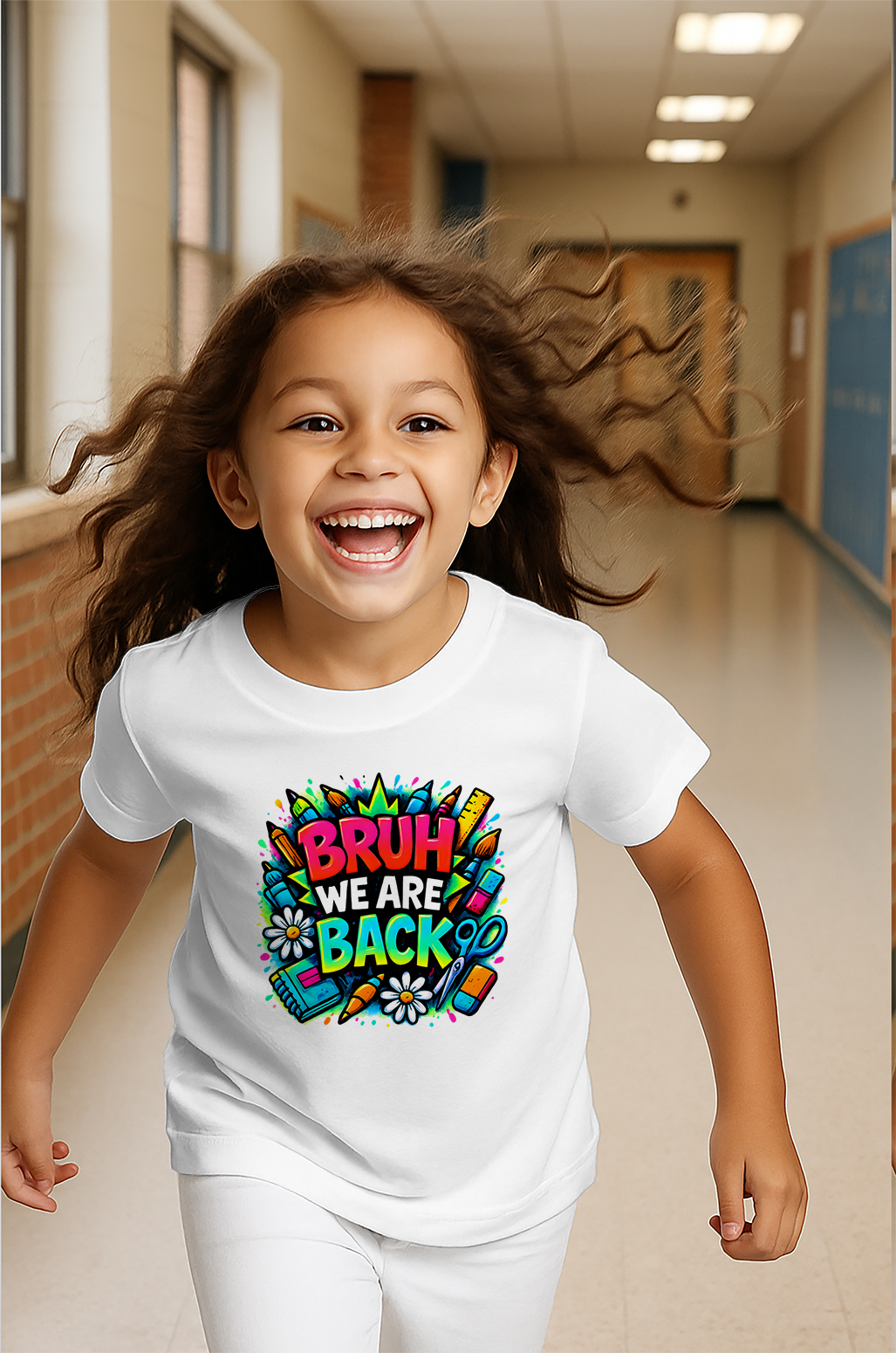 New grade, new gear, same energy! This vibrant white tee brings all the excitement (and sass) of the first day back to school. With colorful school-themed graphics and bold lettering, it’s perfect for kids who are loud, proud, and ready to rule the hallways.