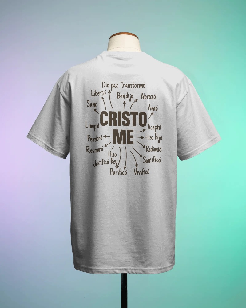 This powerful “Cristo Me” tee is more than fabric — it’s a declaration of everything Christ has done in your life. Words of freedom, restoration, and love radiate from the center, reminding you and everyone around that through Him, you’ve been transformed, healed, and made new.