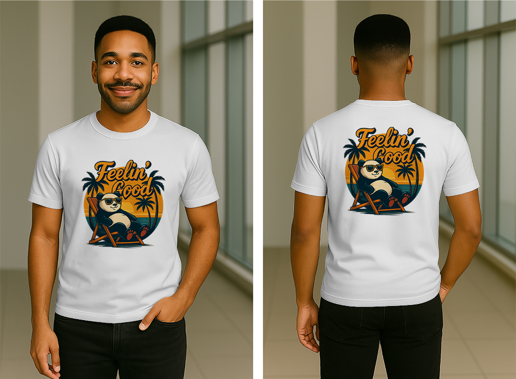 Relax in style with our bold and playful “Feelin’ Good” tee! Featuring a chill panda soaking up a sunset with serious vibes, this shirt is made for comfort and designed to turn heads. Soft, breathable fabric and a vibrant, modern graphic make it your new go-to for laid-back days and standout streetwear.