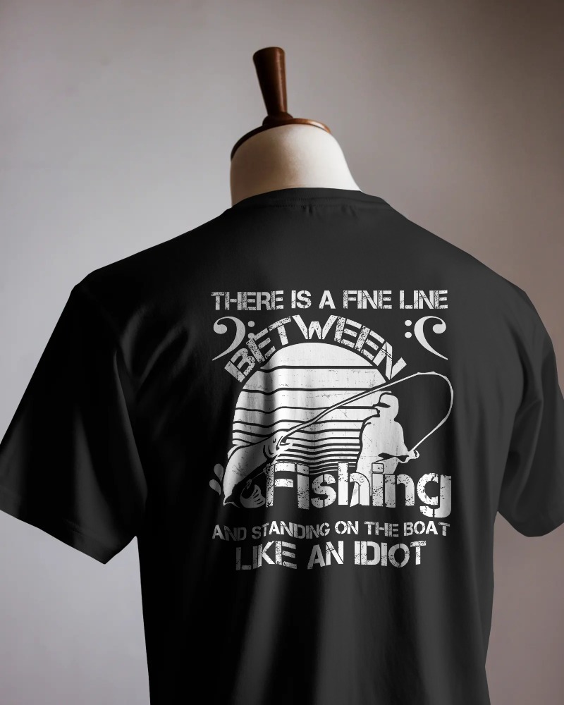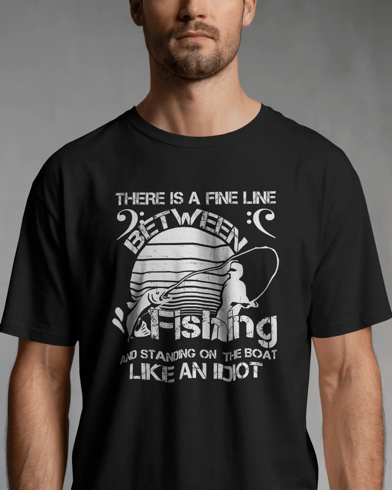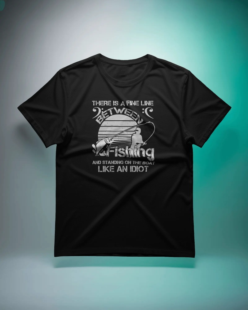 Show off your fishing humor with this “There’s a fine line between fishing and standing on the boat like an idiot” shirt. A perfect conversation starter for any angler.