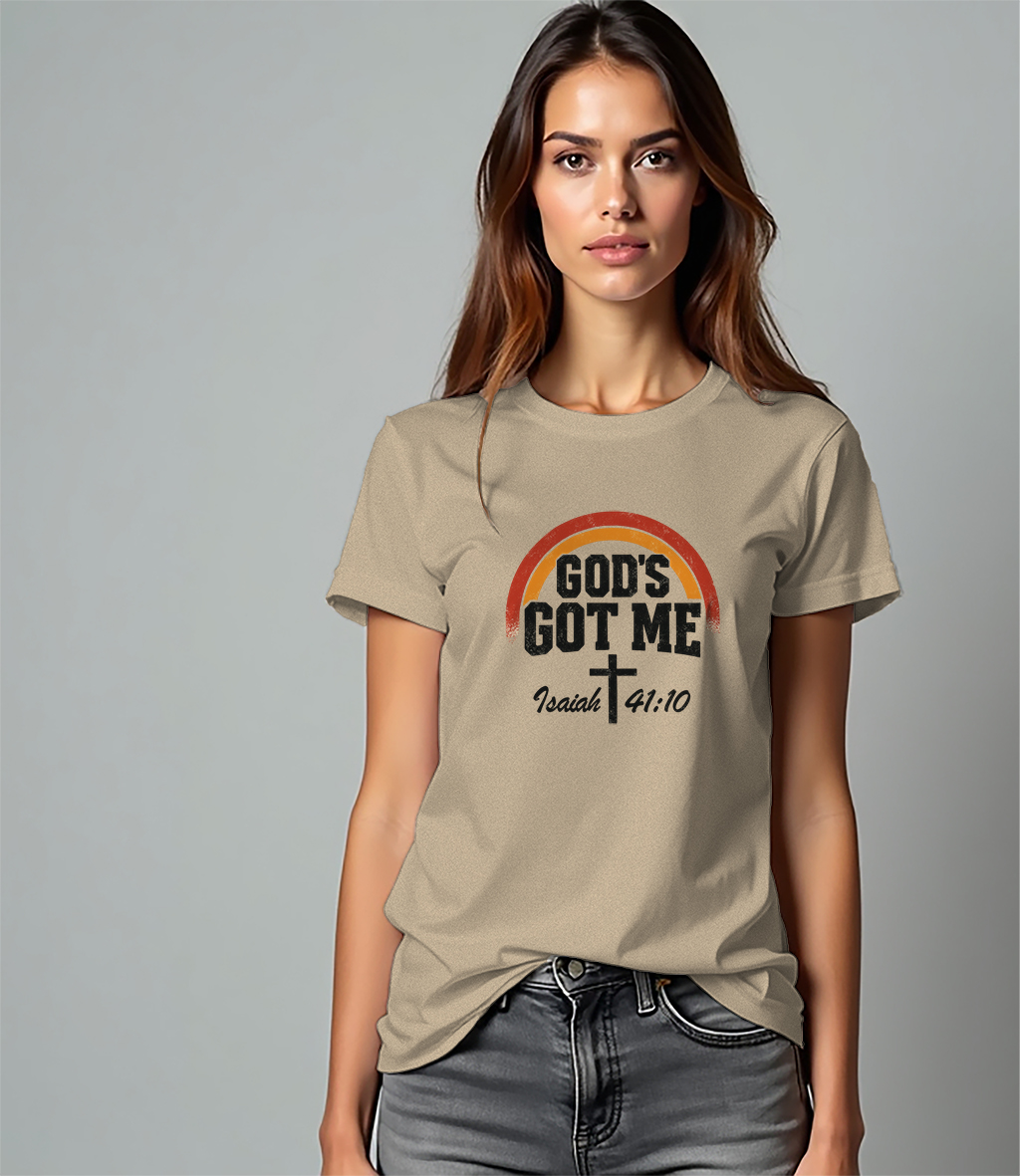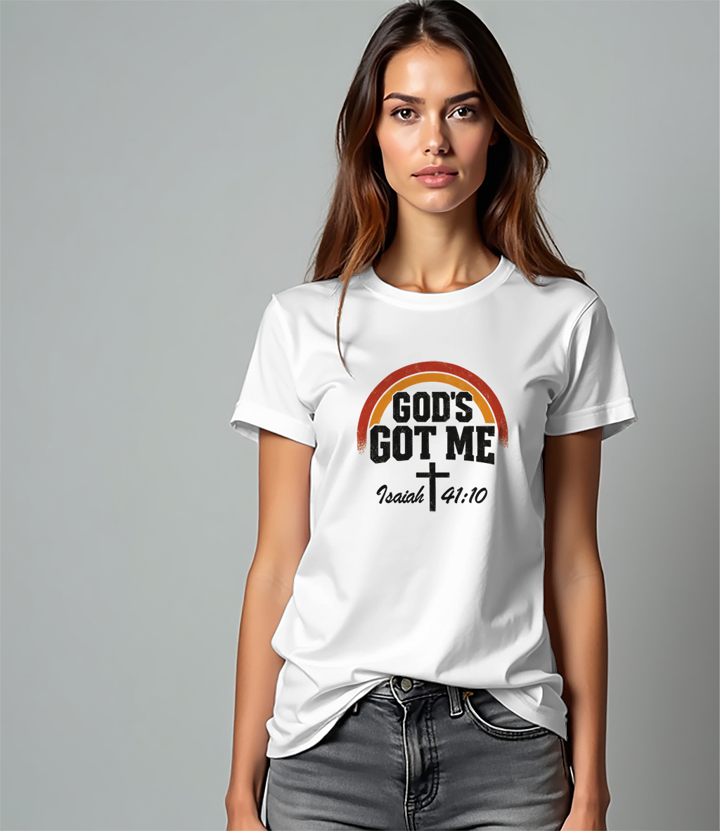 Bold faith, vintage style. This soft tee features a retro rainbow design with Isaiah 41:10—a daily reminder that you’re never alone.
