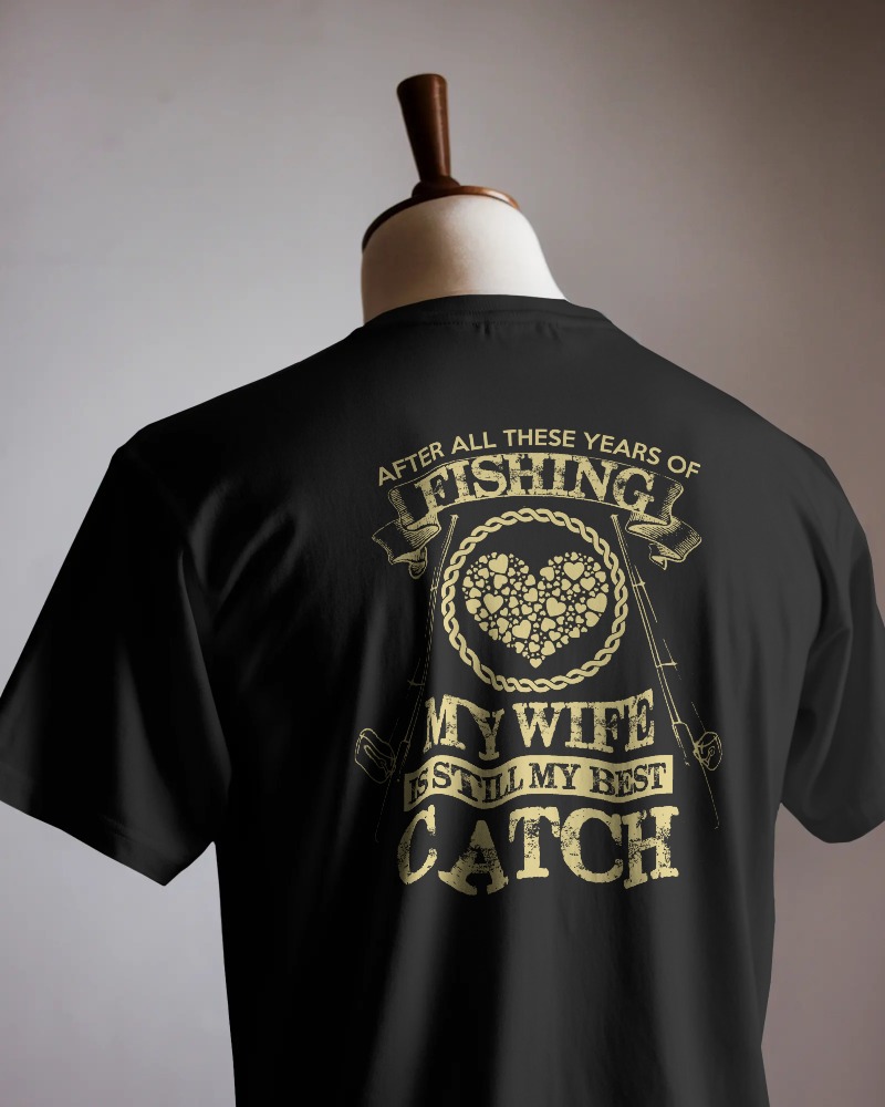 Perfect for husbands and dads, this shirt mixes humor and love, making it a great relationship-themed fishing design.