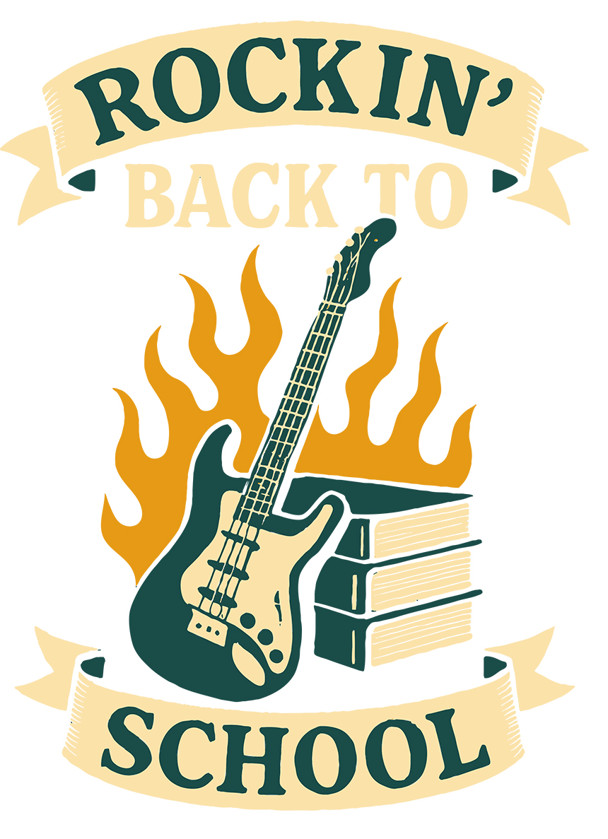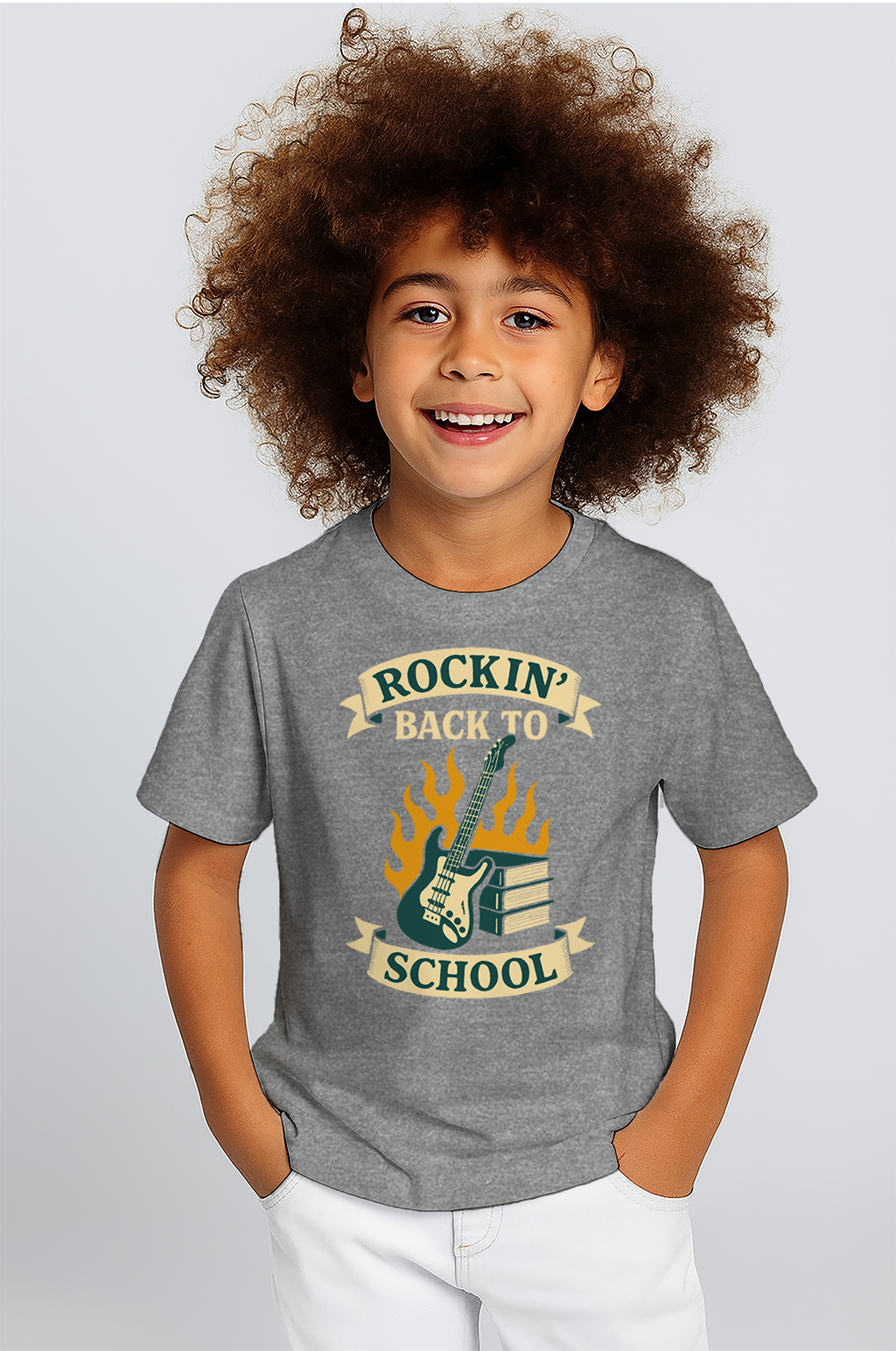 Turn up the volume on your kid’s school style! This “Rockin’ Back to School” tee brings the perfect mix of cool and classroom-ready. Featuring a flaming guitar and a stack of books, this design is made for little rockstars who are ready to crush the school year with confidence.