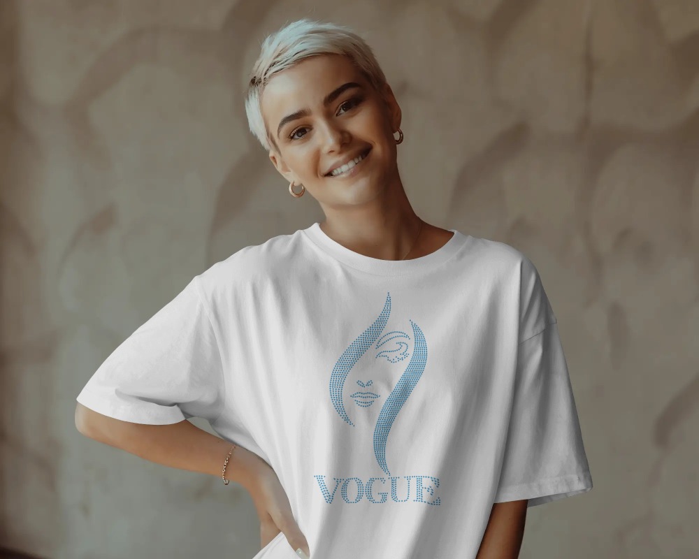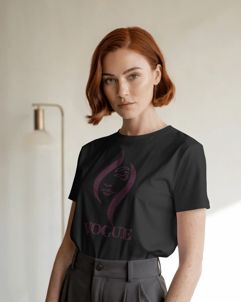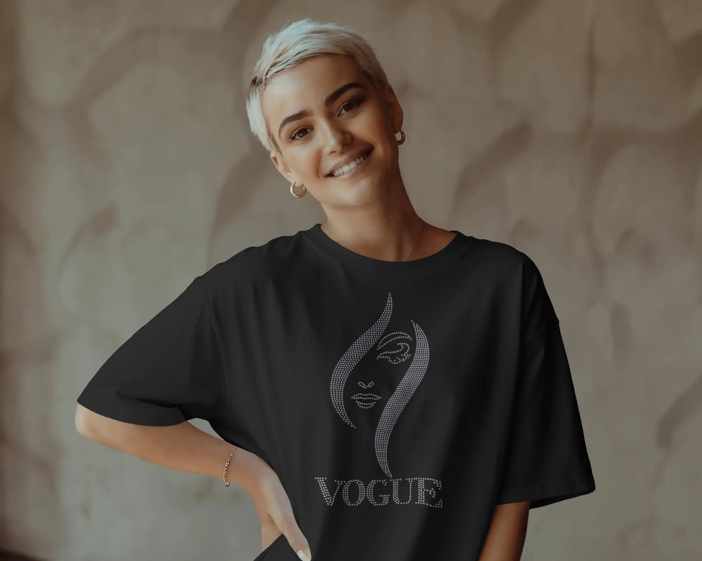 Dazzle with confidence in our VOGUE Rhinestone Tee — where classic style meets a touch of glamour. Designed for the modern woman who loves elegance with an edge, this piece turns everyday wear into a statement of sophistication.
