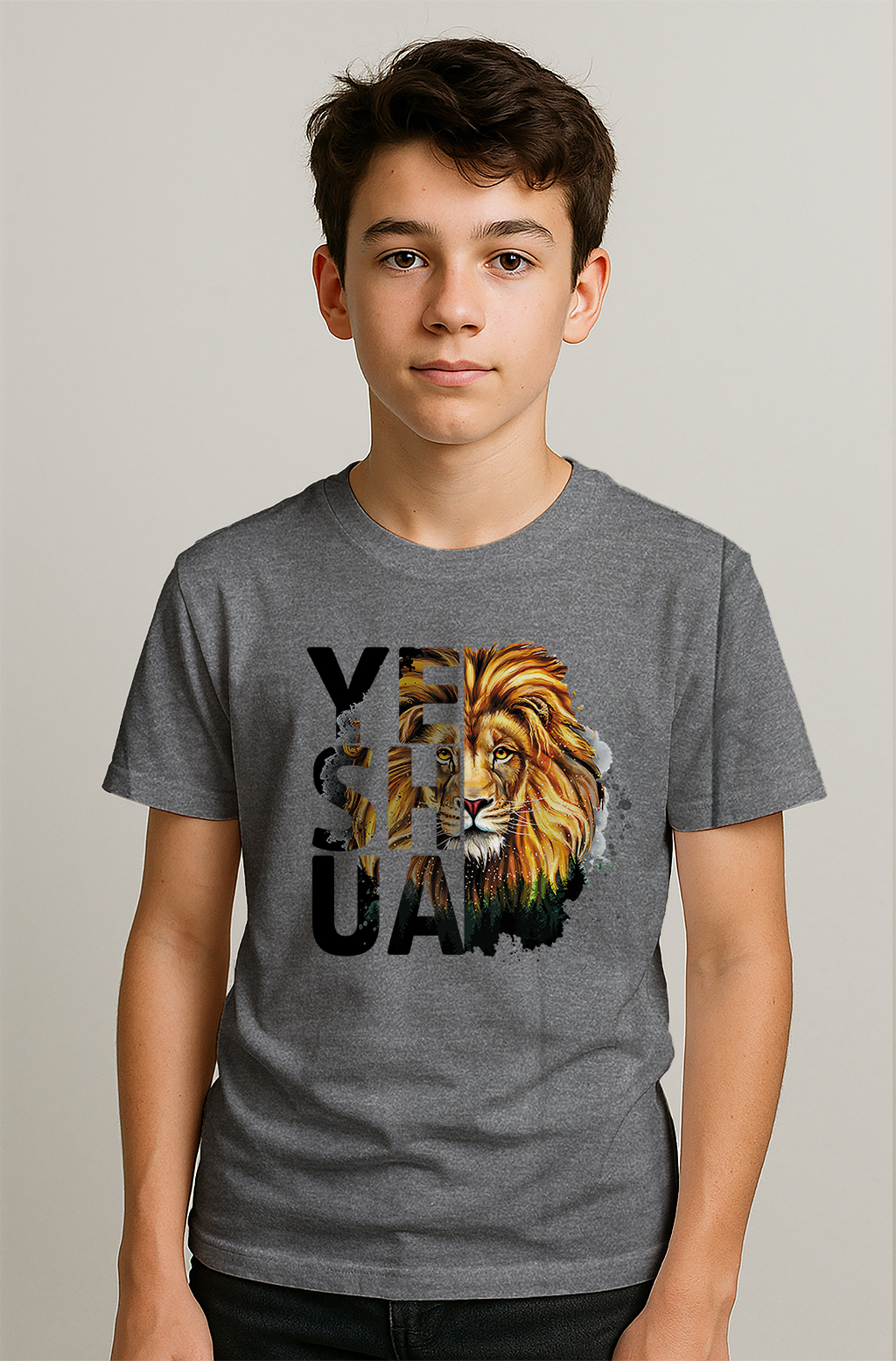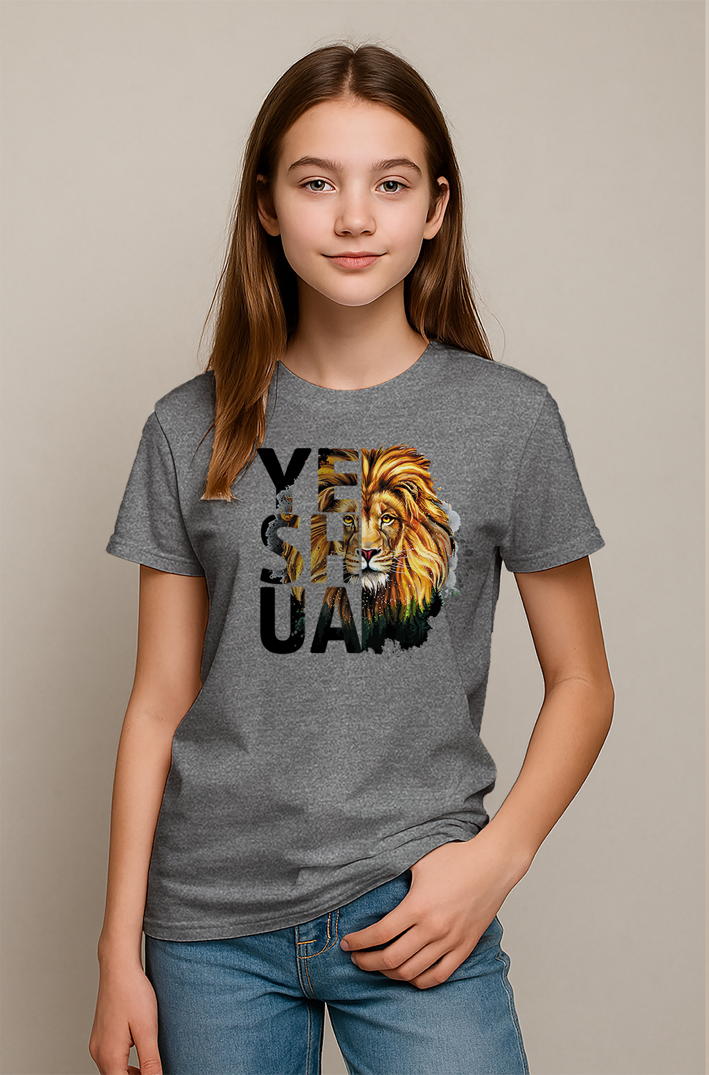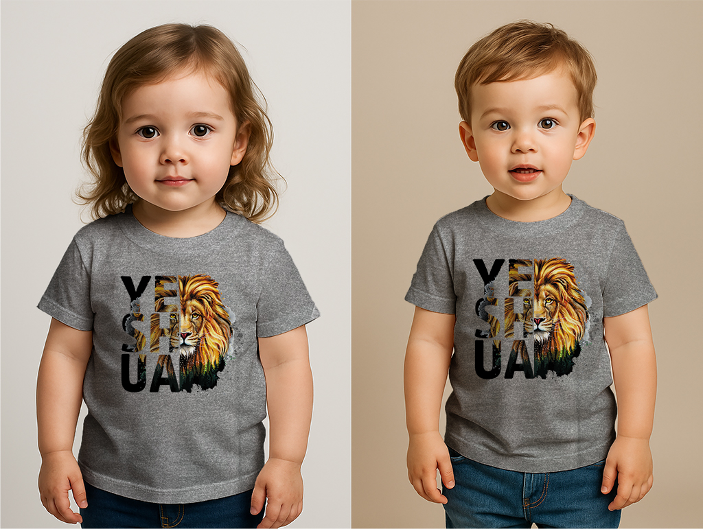 Bold faith meets fierce style in our Yeshua Lion Face T-Shirt. Featuring a powerful lion graphic embedded within the name “YESHUA,” this design symbolizes courage, protection, and unshakable belief. Whether you’re heading to church, a casual outing, or family photos, this shirt makes a statement.