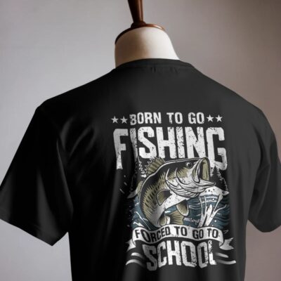 Perfect for young anglers, this funny fishing shirt features âBorn to Go Fishing, Forced to Go to School.â A fun design for kids whoâd rather be fishing than in class.